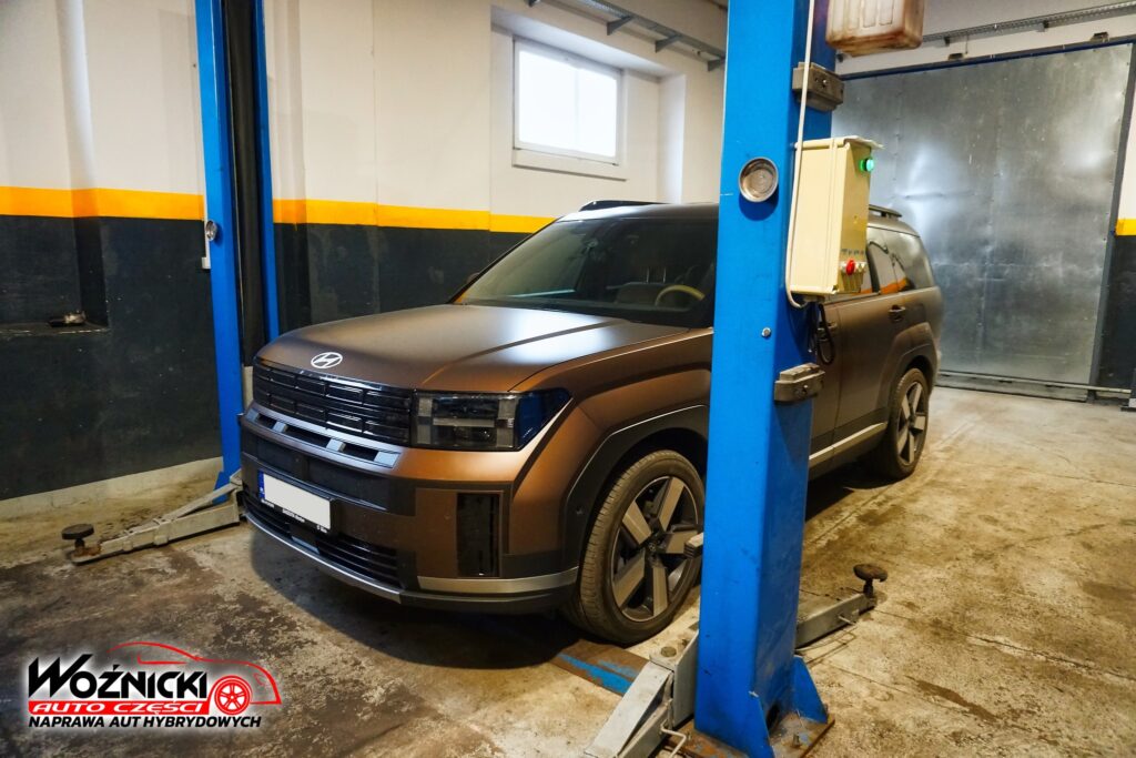 Taka właśnie piękność trafiła do nas ostatnio na warsztat. To Hyundai Santa Fe, rocznik 2024 z silnikiem hybrydowym (na „elektryku” pokona za jednym machnięciem 65 kilometrów), którego właścicielka przyjechała do nas na pierwszą dla tego pojazdu wymianę oleju – następuje ona po pokonaniu 5 tys. km.