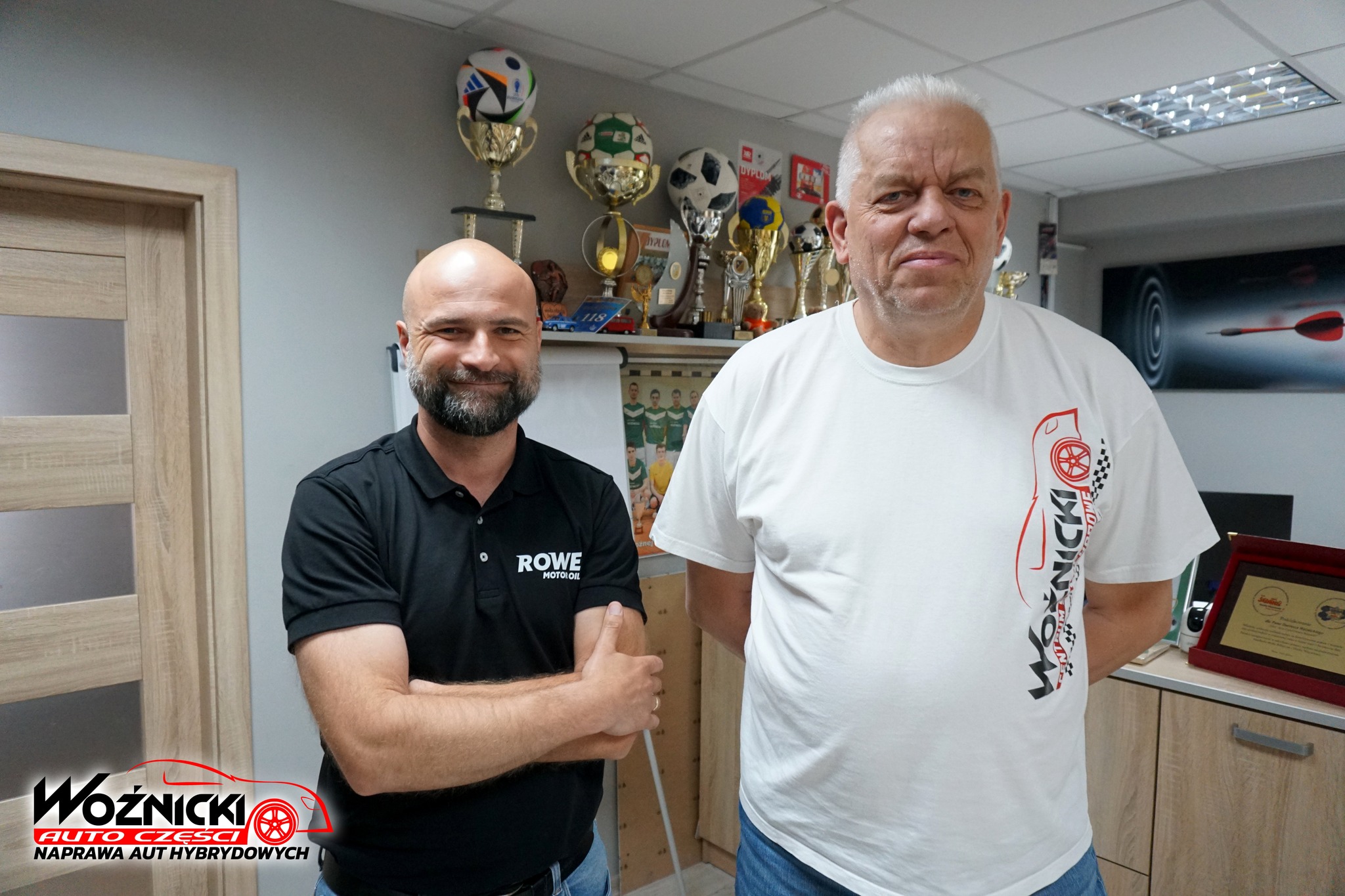 Na zdjęciu Darek Woźnicki oraz Rafał Stasiak, przedstawiciel ROWE MOTOR OIL Polska, podczas ostatniej wizyty w naszej siedzibie przy ul. Wiejskiej 2b.
